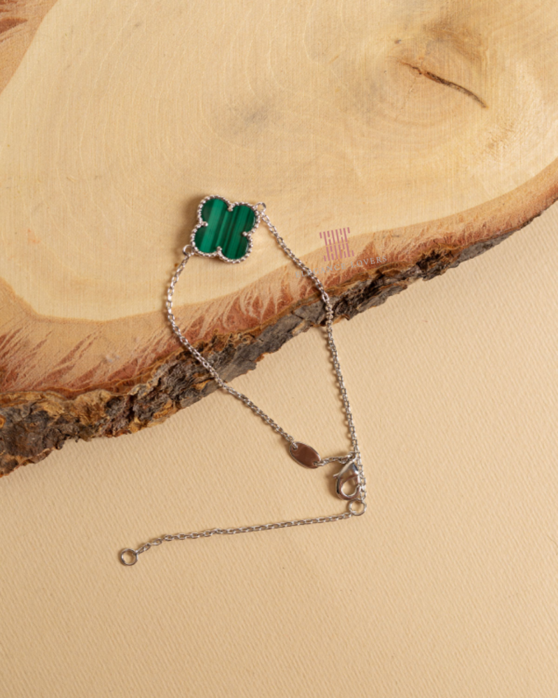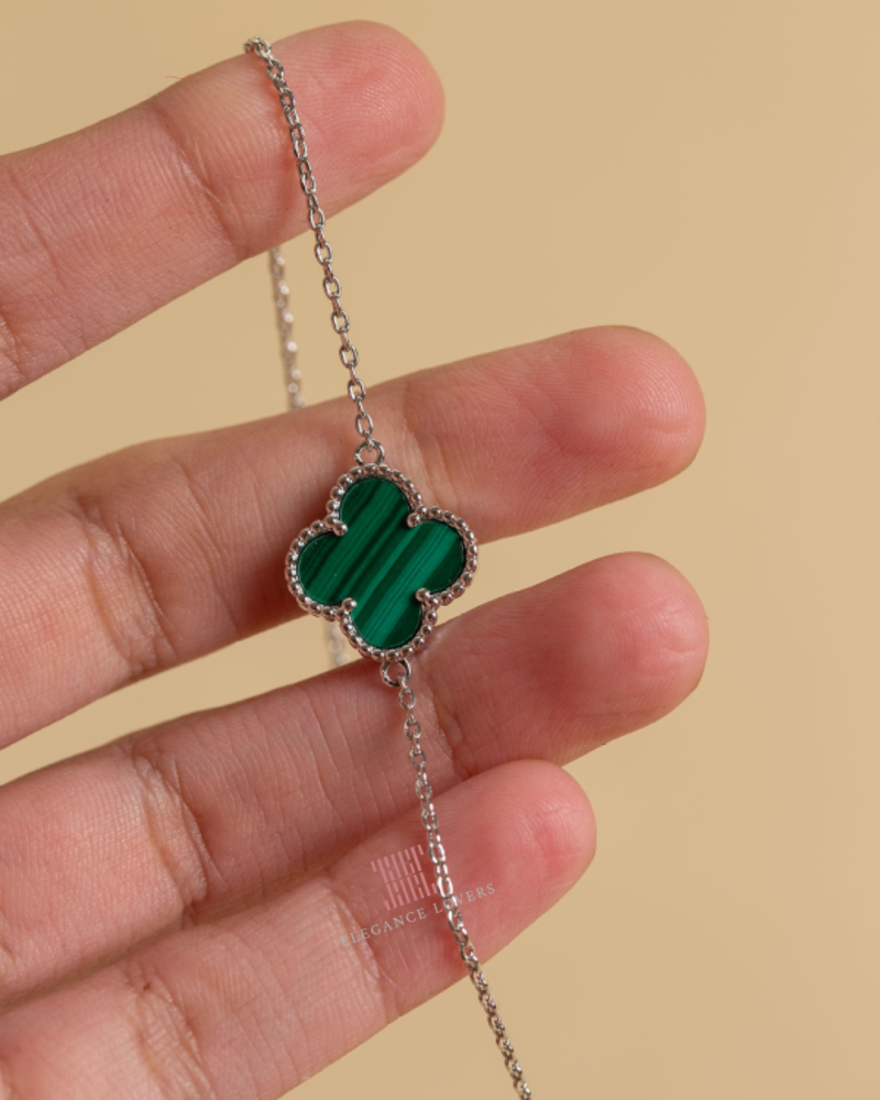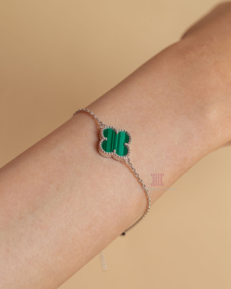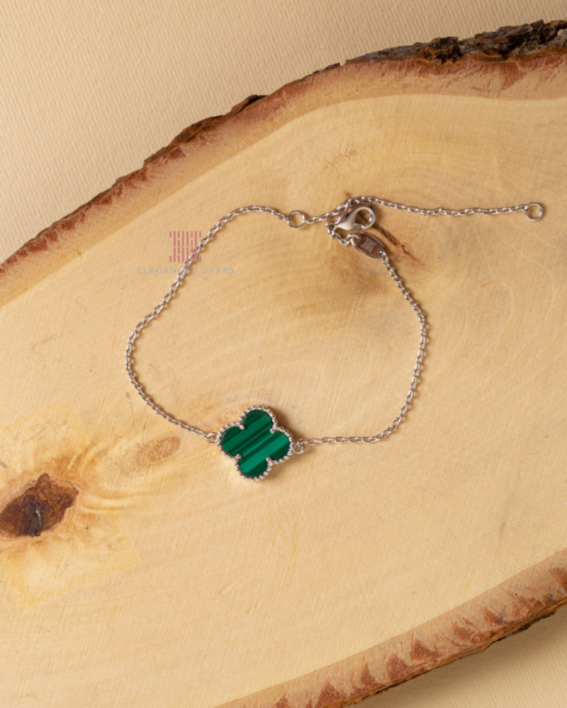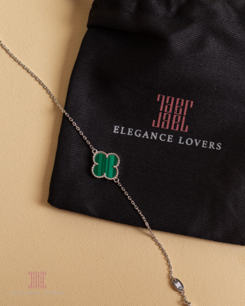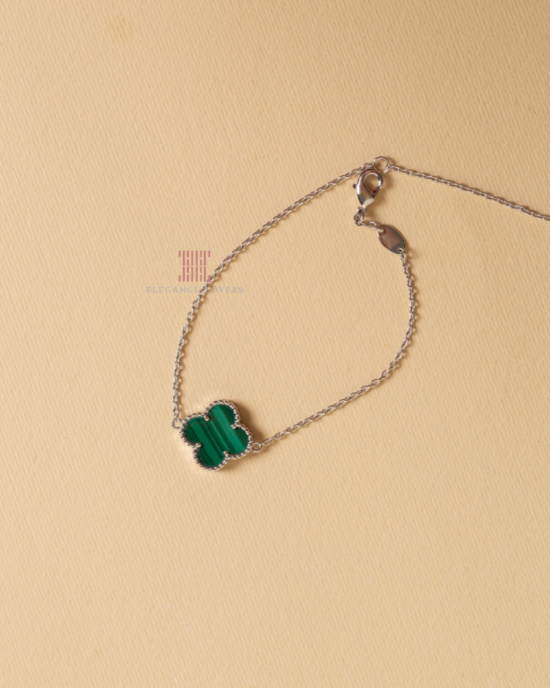 إسوارة زهرة البرسيم حجر ملاكيت أخضر مطلية ذهب أبيض ماركة Elegance Lovers
