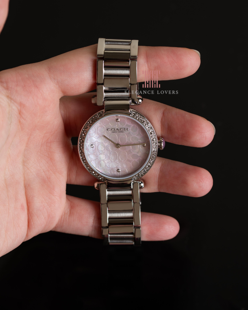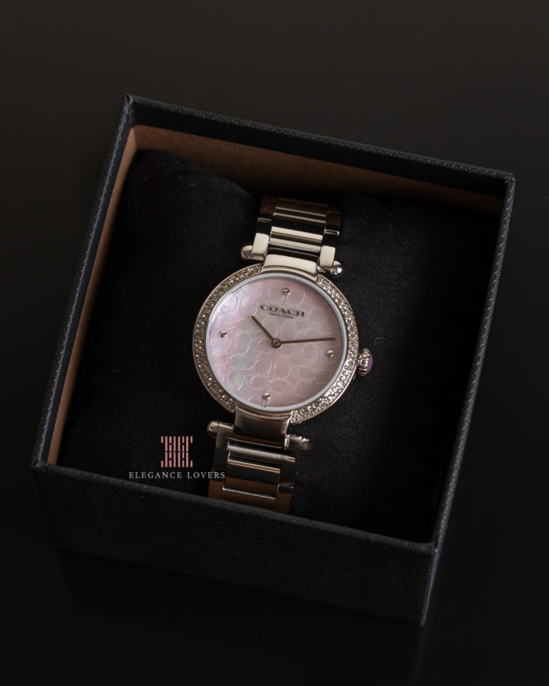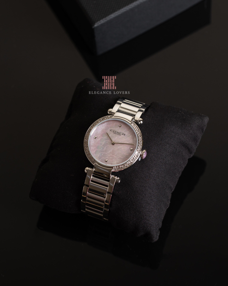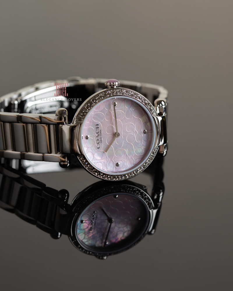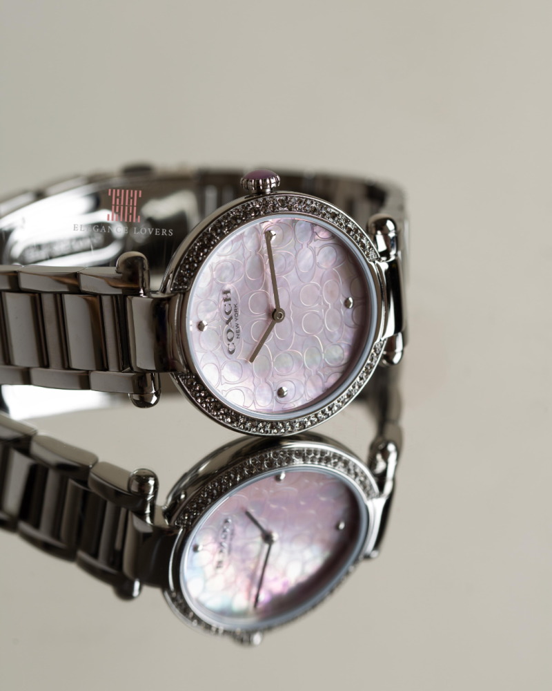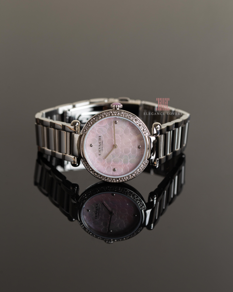 ساعة نسائية كريستال ماركة كوتش - فضي ميناء صدف وردي