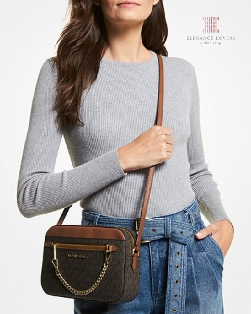 شنطة كروس ماركة مايكل كورس - Brown Signature Zip