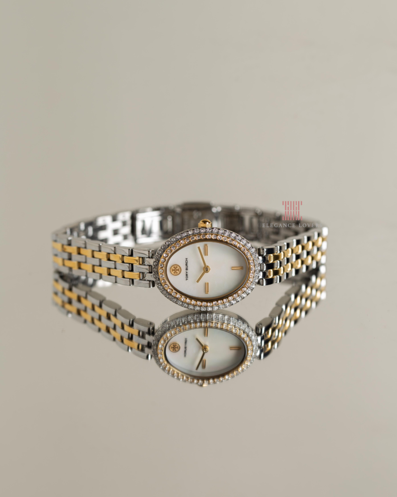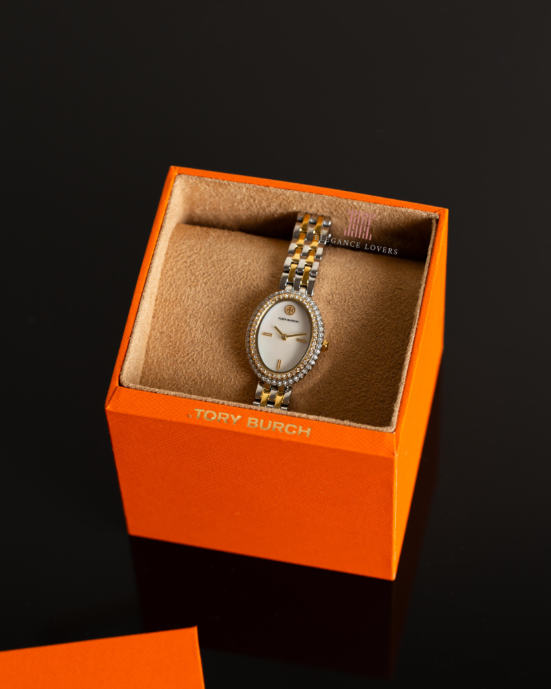 ساعة توري بورش بيضاوية نسائية TBW6037 صُممت لتكون أكثر من مجرد أداة لمعرفة الوقت، فهي تفصيل أنثوي ناعم يزين معصمك ويمنحك إشراقة خاصة و يجتمع في تصميمها ميناء عرق اللؤلؤ الهادئ مع الكريستال اللامع والسوار ثنائي اللون ليعكس ذوقًا راقيًا لا يخطئه النظر.