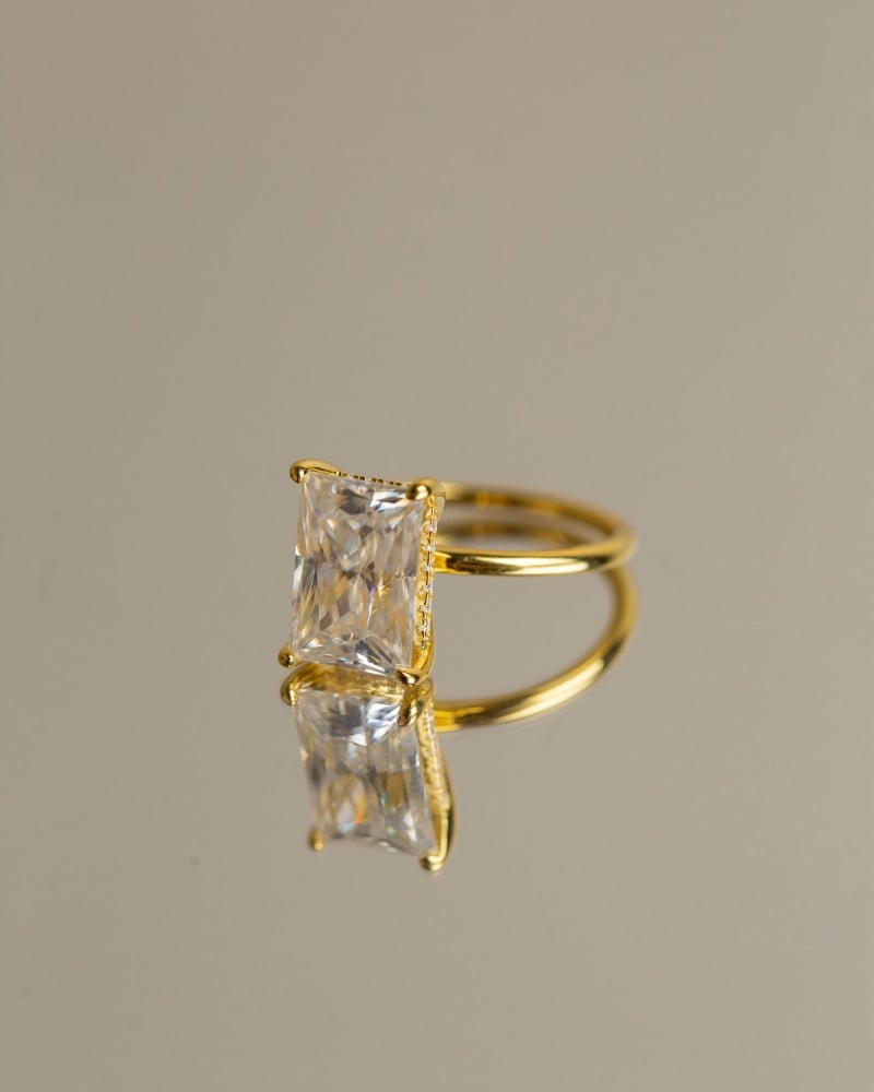 خاتم فضة Gold Radiant مطلي ذهب مُرصّع بحجر المويسنايت ماركة Elegance Lovers