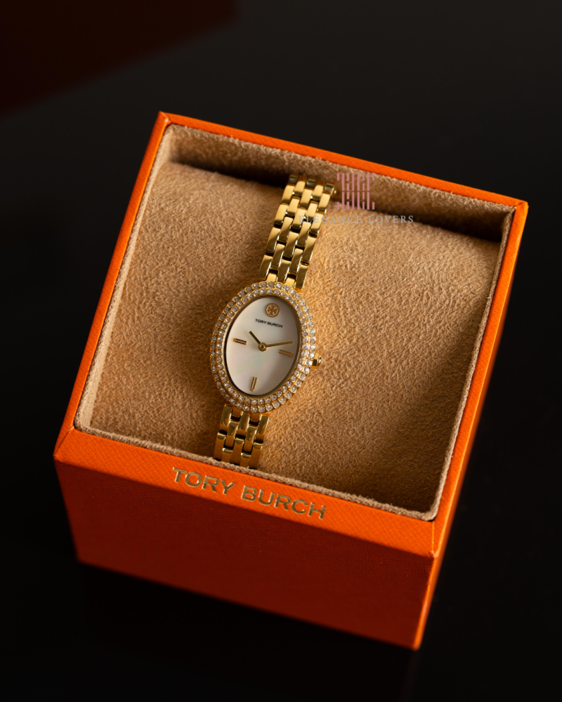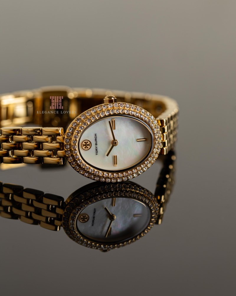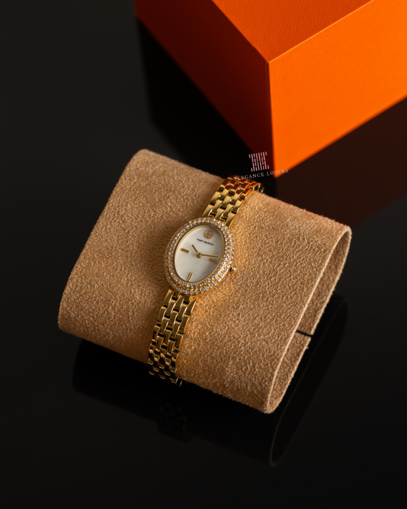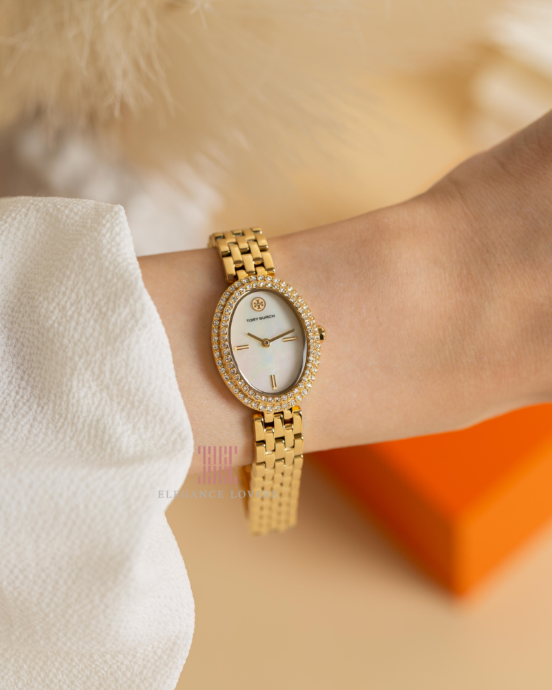 تتميز الساعة بميناء أنيق يشبه المجوهرات، حيث تم ترصيع الميناء المصنوع من عرق اللؤلؤ داخل علبة بيضاوية الشكل، ومزينة بزخارف مرصوفة. ويكتمل التصميم الأنثوي بسوار كلاسيكي على شكل حلقة.