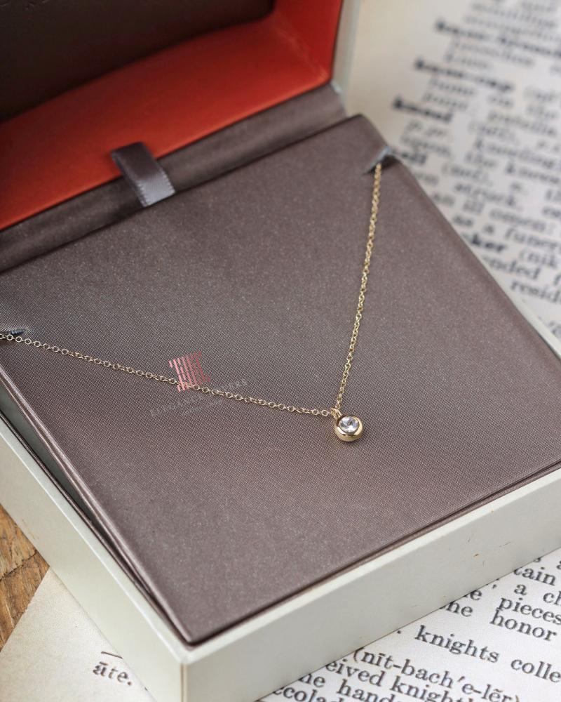 استمتعي بإقتناء سلسال الماس وذهب ماركة جابرييل التي تمنحك إشراقة وإطلالة مميزة فهو مصمم خصيصاً لأصحاب الذوق الرفيع، حيثُ يتكون من جزئين دائرة صغيرة من الذهب الخالص بداخلها فص من الألماس الذي يمنحك الأناقة التي تستحقين.