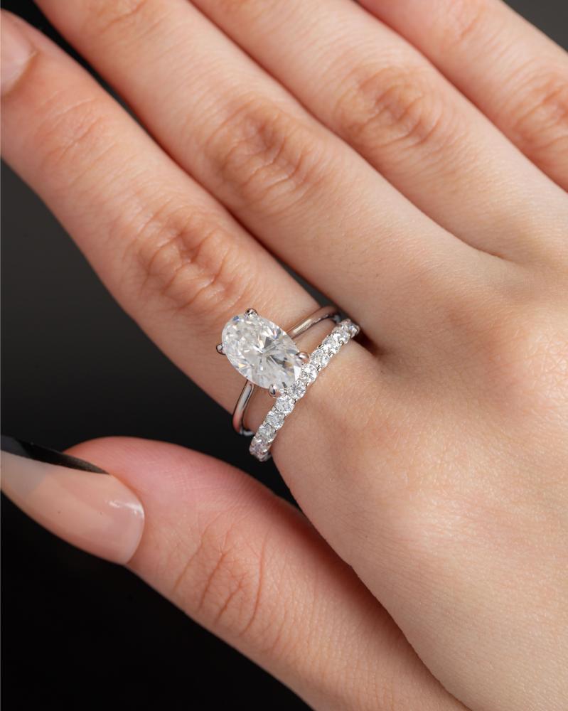 طقم خواتم White OVAL Set فضة مُرصعة بحجر المويسنايت VVS1 ماركة Elegance Lovers