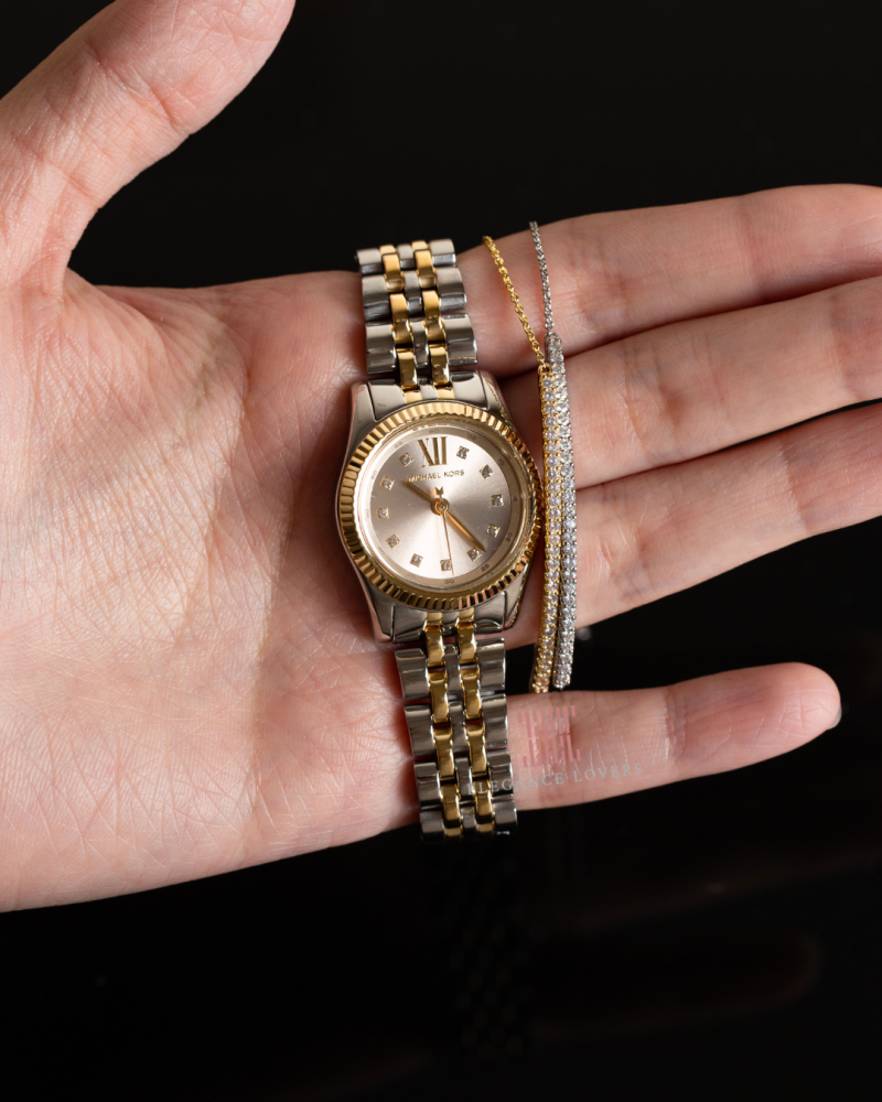 إذا كنتِ تودين أن تجمعين بين الفخامة والأناقة في لبسك اليومي أو المناسبات الخاصة، طقم ساعة + أساور نسائية من ماركة مايكل كورس سيكون الخيار الأمثل لكِ. الطقم يجمع بين اللمسة العصرية والجودة اللتي لطالما عُرفت فيها علامة مايكل كورس، كوني على ثقة بإنه إطلالتك ستكون دائماً مميزة وتلفت الأنظار.
