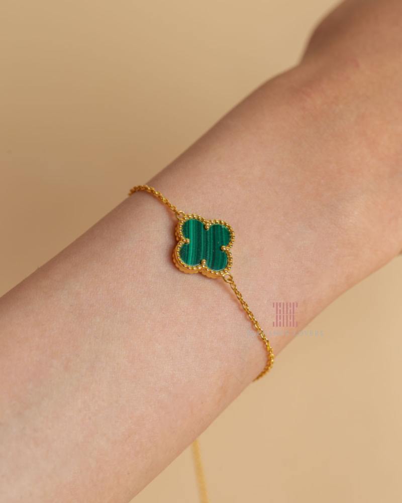 إسوارة زهرة البرسيم حجر ملاكيت أخضر مطلية ذهب أصفر ماركة Elegance Lovers