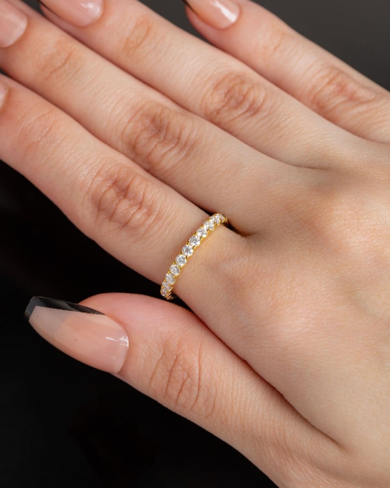 خاتم فضة Gold Eternity مطلي ذهب مُرصّع بحجر المويسنايت ماركة Elegance Lovers